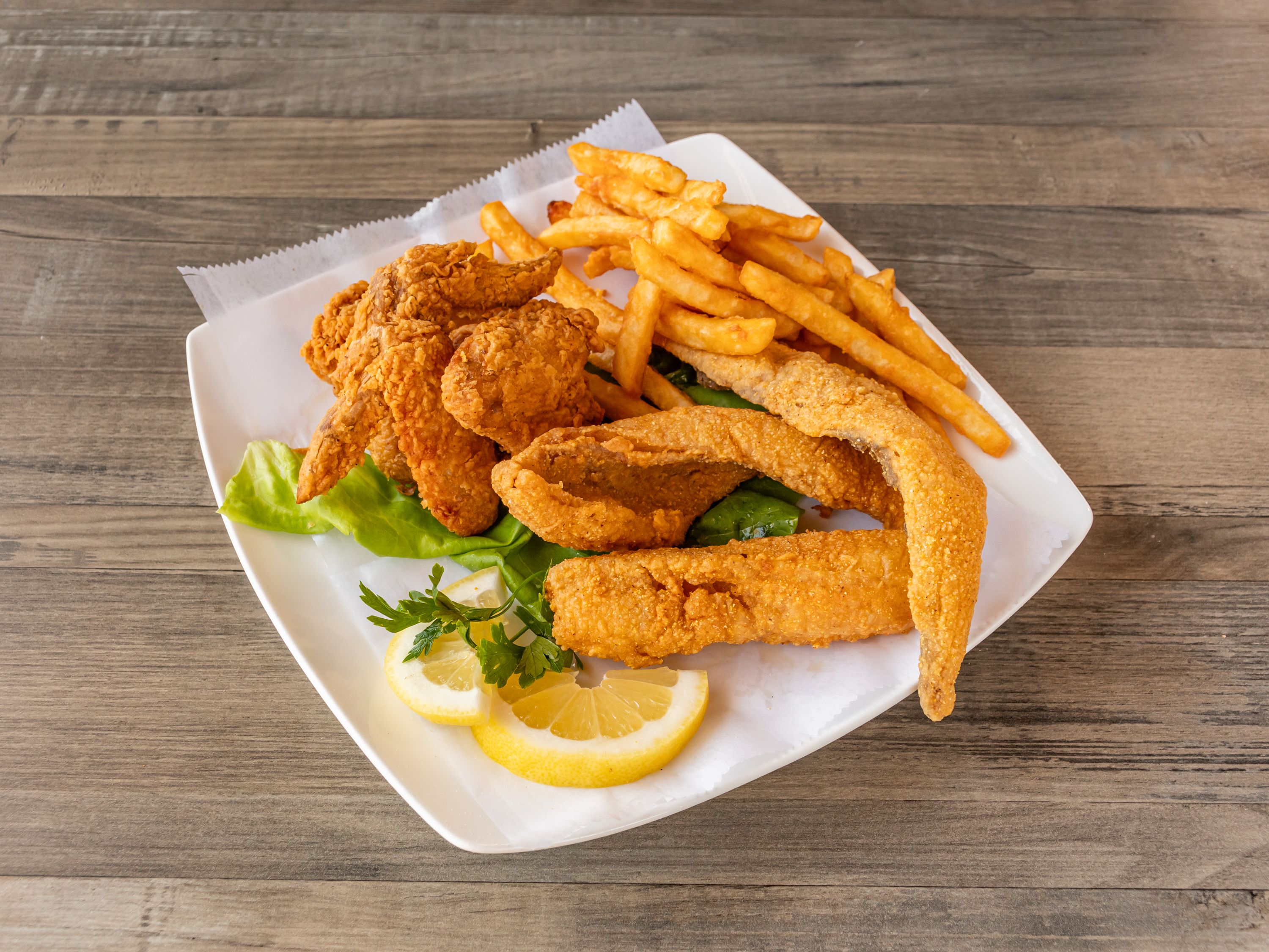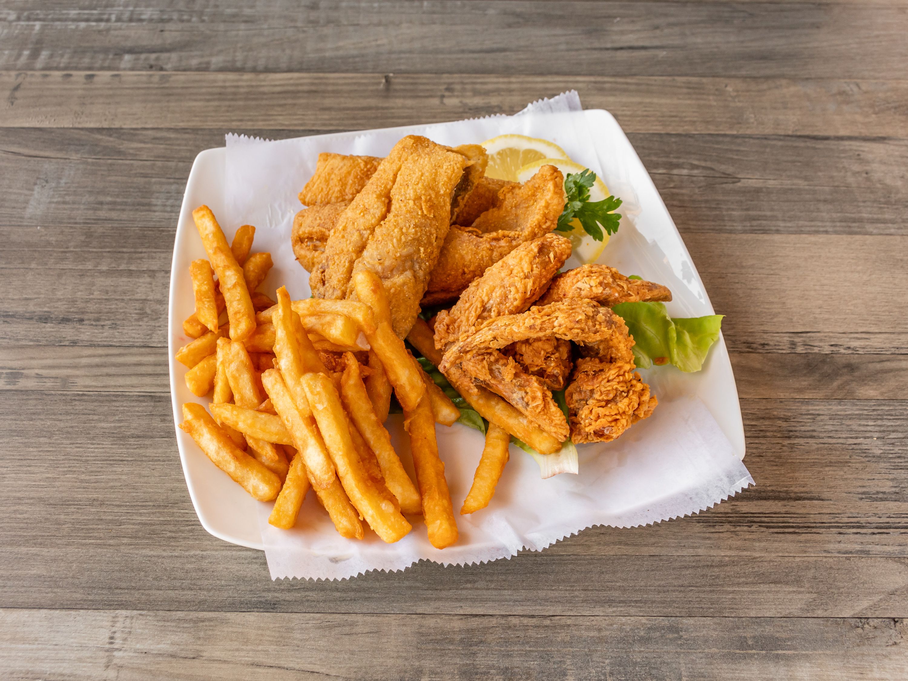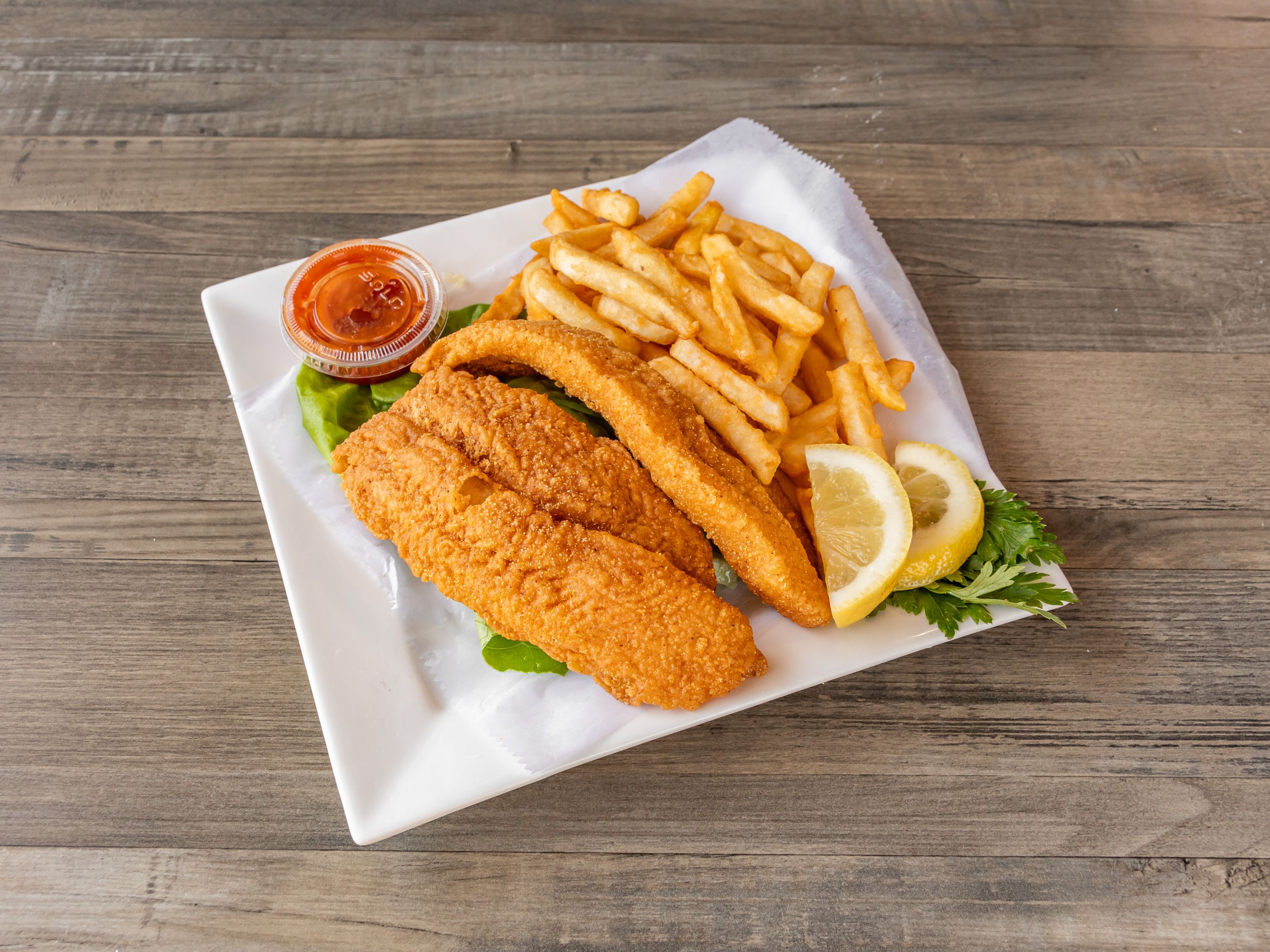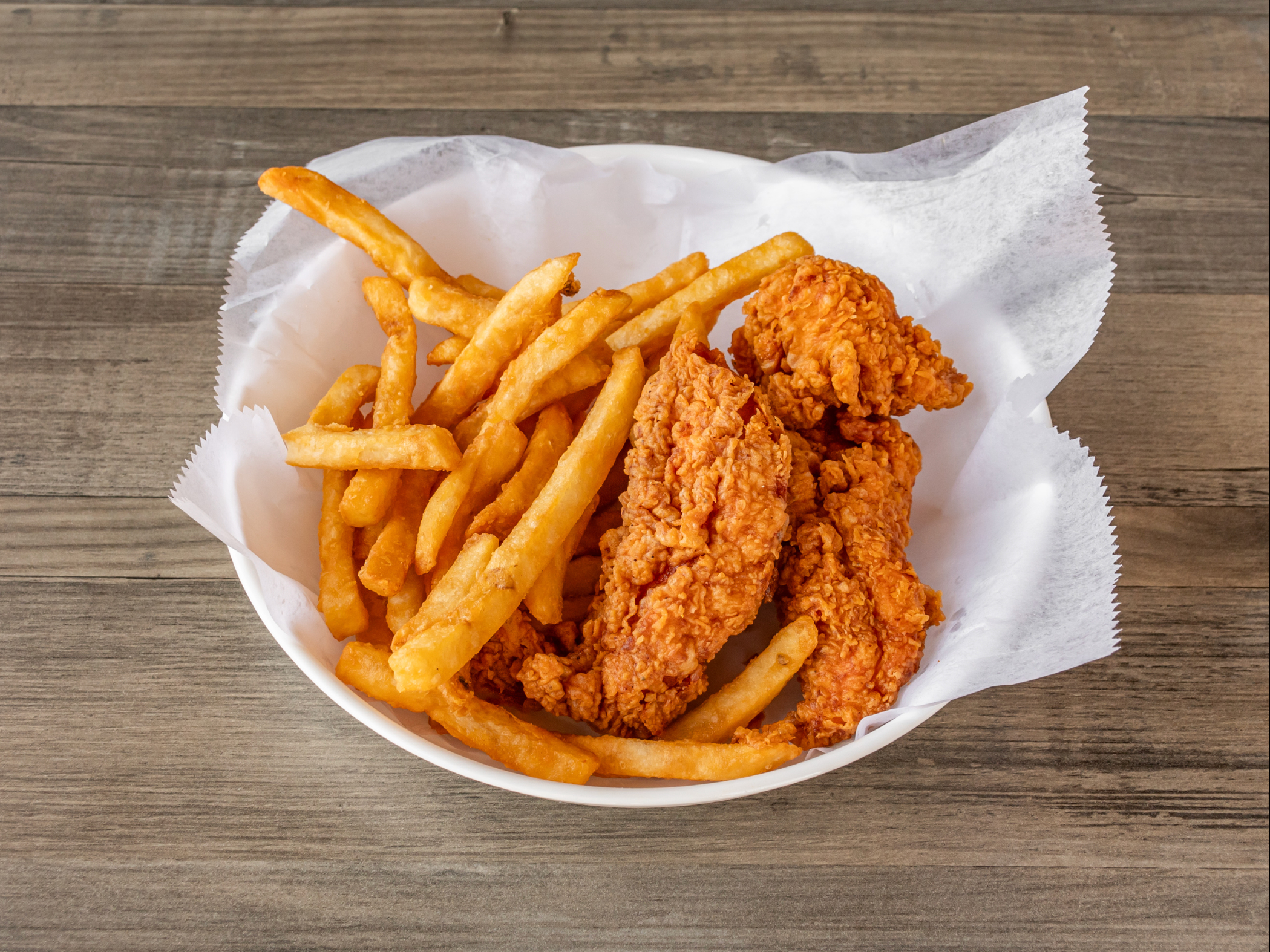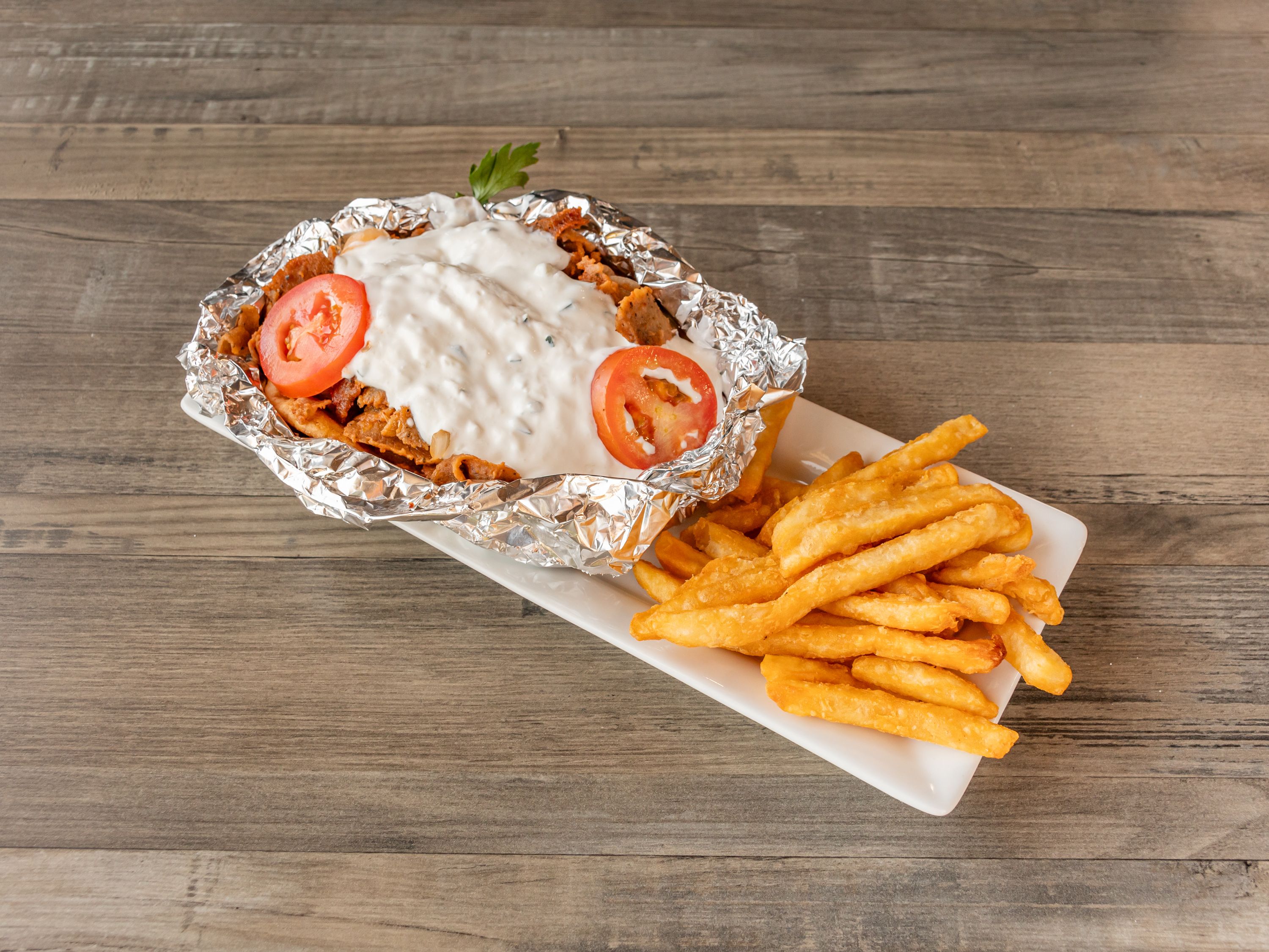 2 pieces of our Juicy chicken tenders, lettuce, tomato, green peppers, onions, shredded cheese, feta cheese (optional), banana peppers and our creamy ranch dressing